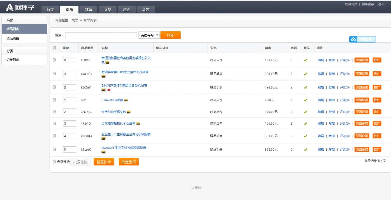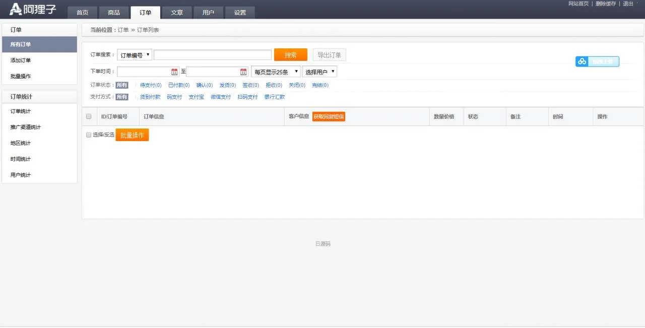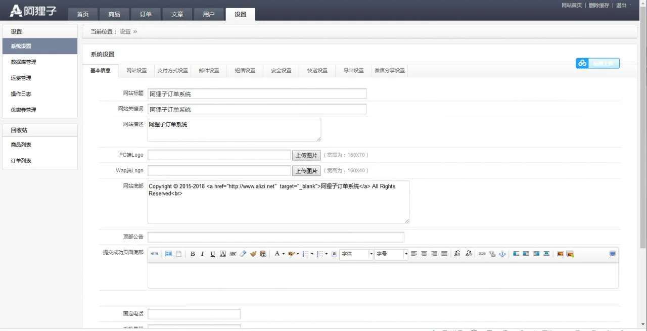 C067 阿狸子订单系统豪华版(全功能旗舰版):PC模块+WAP手机版模块+文章模块+用户分销模块 admin 编辑 商品价格 VIP免费下载 联系客服 立即下载 虚拟商品,自动发货 7 天无忧退款 源码介绍:阿狸子订单系统豪华版,也就是全功能旗舰版了,带PC前台模块+WAP手机版模块(和PC端自适应)+文章模块+用户分销模块, 整合多个支付接口,支持二维码推广。这个没任何加密,全解密版本,使用起来更加安全放心!使用说明:把程序解压到网站根目录,然后按照提示直接安装即可!麒麟源码网亲测前端截图: 麒麟源码网亲测后台截图: