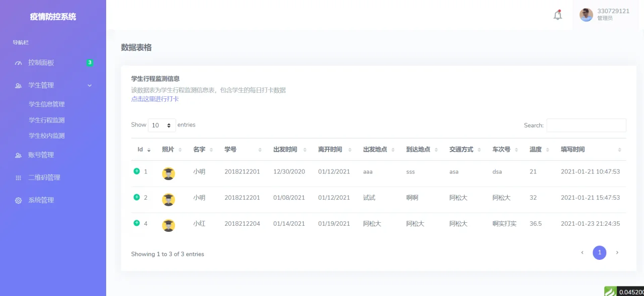 thinkphp6.0框架开发,校园疫情防控进出登记管理系统源码,功能齐全,帮助校园疫情防控,当然也可以应用各种场景。
