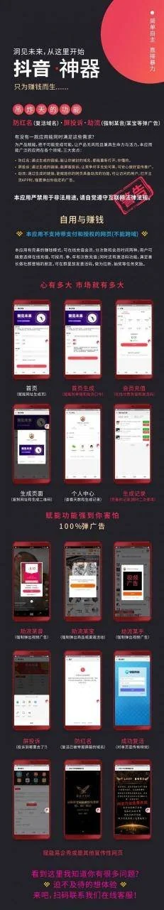 朋友从某站整来的价值980元的抖音口令,抖音截流,快手口令,快手截流,抖音快手引流加好友,引流黑科技截流神器源码。 源码应该是不完整的。我看了下某站的源码介绍,某站的应该有管理后台,咱这个没有,但是也能实现抖音截流功能!!