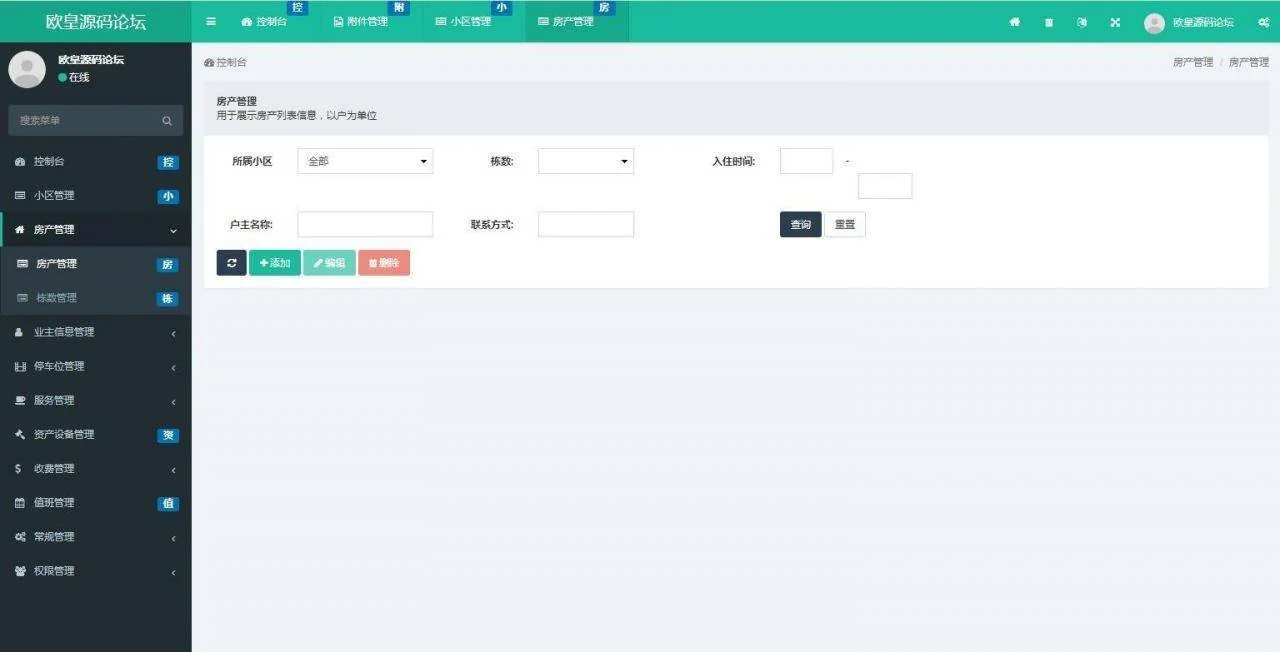 C126 PHP源码 ThinkPHP5多小区物业管理系统源码(多小区支持) admin 编辑 商品价格 VIP免费下载 联系客服 立即下载 虚拟商品,自动发货 7 天无忧退款 安装教程:1.新建数据库db_estate,还原数据db_estate.sql 2.修改配置文件:application/database.php 3.运行域名/public 4.后台地址:域名/admin.php 用户名admin 密码:www.qilinyuanma.com麒麟源码网亲测截图: