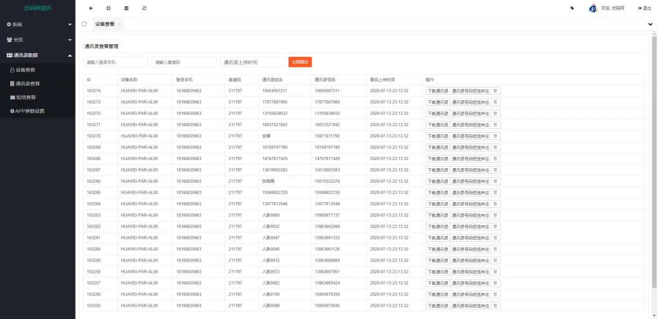 C146 PHP源码_2021最新安卓IOS双端无报毒获取通讯录APP+短信定位+完美运行源码下载+详细视频教程 admin 编辑 商品价格 VIP免费下载 联系客服 立即下载 虚拟商品,自动发货 7 天无忧退款 PHP源码_2021最新安卓IOS双端无报毒获取通讯录APP+短信定位+完美运行源码下载+详细视频教程真金白银买来的价格还挺贵,终身免费,也可资源互换,喜欢的拿去研究,麒麟源码网站长也看了,压缩包里面有视频教程前台截图: 后台截图: