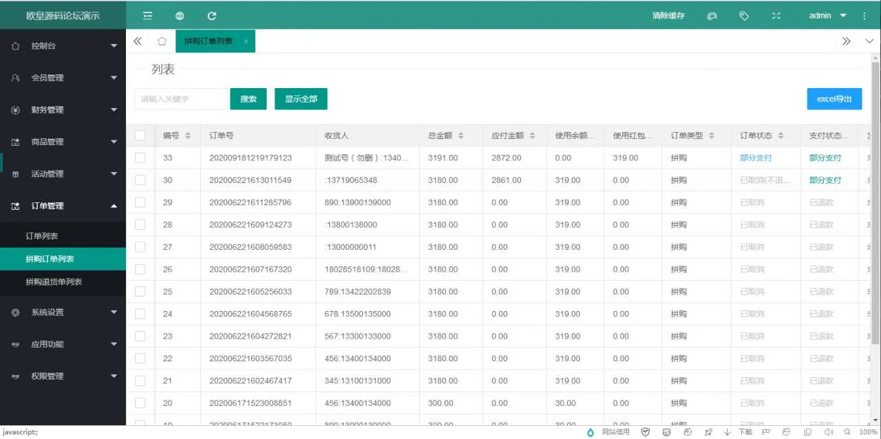 C092 PHP源码_团购拼购商城源码_完美版 admin 编辑 商品价格 VIP免费下载 联系客服 立即下载 虚拟商品,自动发货 7 天无忧退款 安装教程:测试环境:php7.0+mysql5.6+Redis 1、修改数据库配置文件 applicationdatabase.php 2、导入数据库 3、设置TP伪静态,设置 Redis 密码 123456 后台: 域名/admin 用户:admin 密码:www.qilinyuanma.com麒麟源码网亲测前台截图 麒麟源码网亲测后台截图