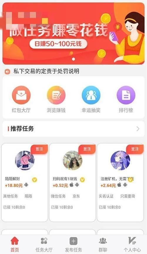 3.客户能够 任务发布,还可以做任务,接单子排位。天降红包