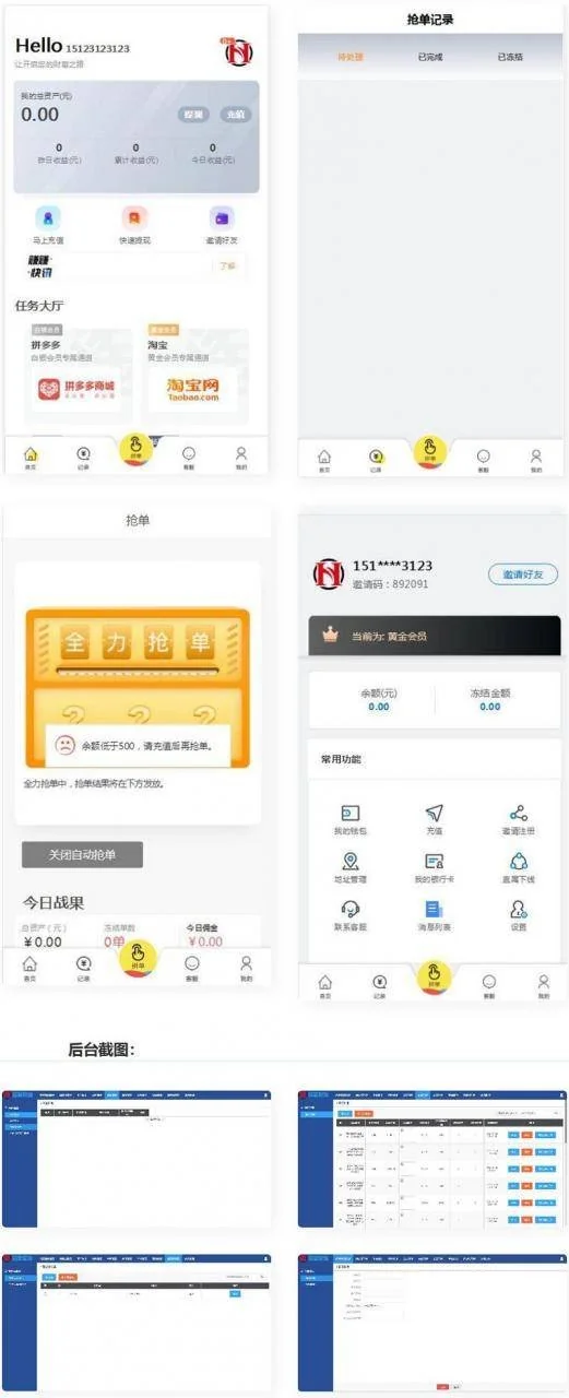 嗨淘V12刷任务点赞系统源码+手动派单版本 admin 编辑 商品价格 VIP免费下载 联系客服 立即下载 虚拟商品,自动发货 7 天无忧退款 温馨提示:本源码提供给大家学习研究借鉴美工之用,请勿用于商业和违法用途,无任何技术支持!转载来的,和之前的刷单的后台都不太一样,很难看。最亮眼的功能就是可以手动给指定客户派单了,这也是之前很多人在找的功能,但是源码是不完美的,有很大问题,只能供参考