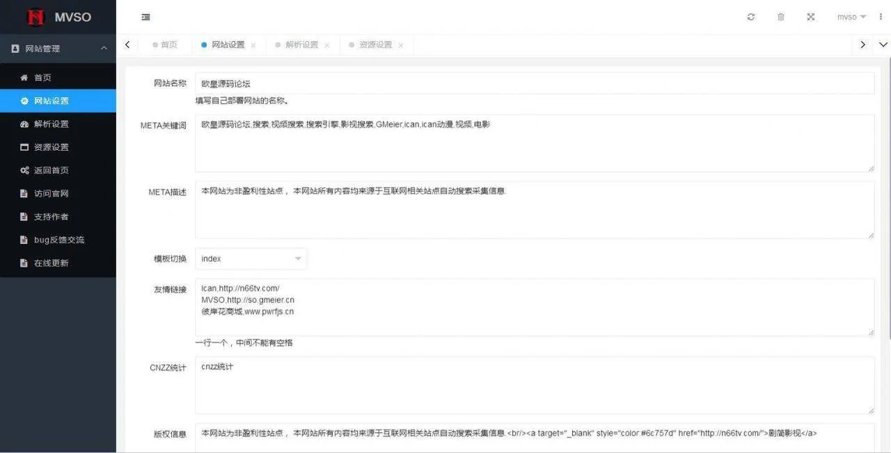 请用php7.1|7.2(推荐PHP7.2) 宝塔伪静态用thinkphp,EP面板上传直接用 不支持二级目录搭建本程序 !!!切记不需要设置二级目录!!! nginx伪静态在根目录.nginx.htaccess apache在根目录.htaccess ep面板无需设置伪静态 后台地址:域名/admin/index 用户名:mvso 密码:123456