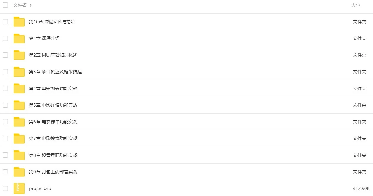 MUI仿豆瓣电影APP跨平台混编框架系列课程 admin 编辑 商品价格 VIP免费下载 联系客服 立即下载 虚拟商品,自动发货 7 天无忧退款 MUI仿豆瓣电影APP跨平台混编框架系列课程课程说明:包含课程介绍、MUI基础知识介绍、项目框架搭建、电影列表/详情/榜单/搜索功能实战、设置界面功能实战和打包上线部署等内容。需要的自行下载学习。