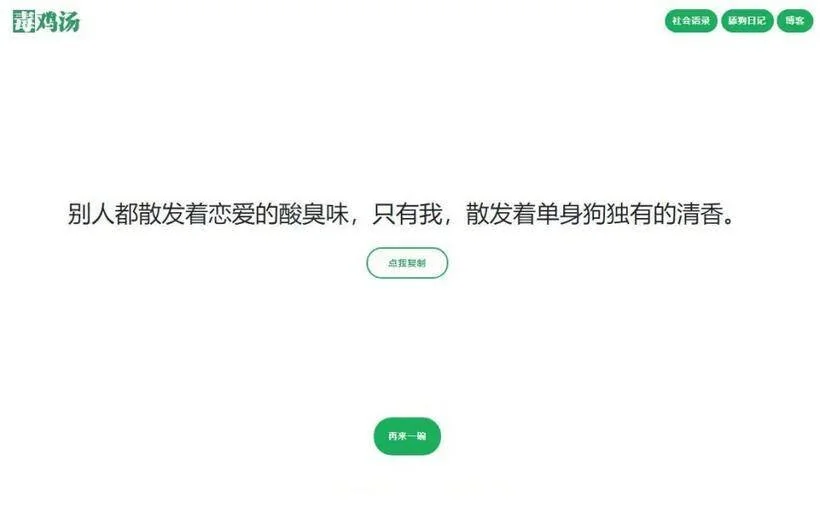 PHP心灵鸡汤毒鸡汤社会语录舔狗语录三合一网站源码 admin 编辑 商品价格 VIP免费下载 联系客服 立即下载 虚拟商品,自动发货 7 天无忧退款 PHP心灵鸡汤毒鸡汤社会语录舔狗语录三合一网站源码程序可随机输出舔狗语录、毒鸡汤等语录。程序里面文本含语录,要做API的话自行调试API接口即可。需要的自行下载研究。
