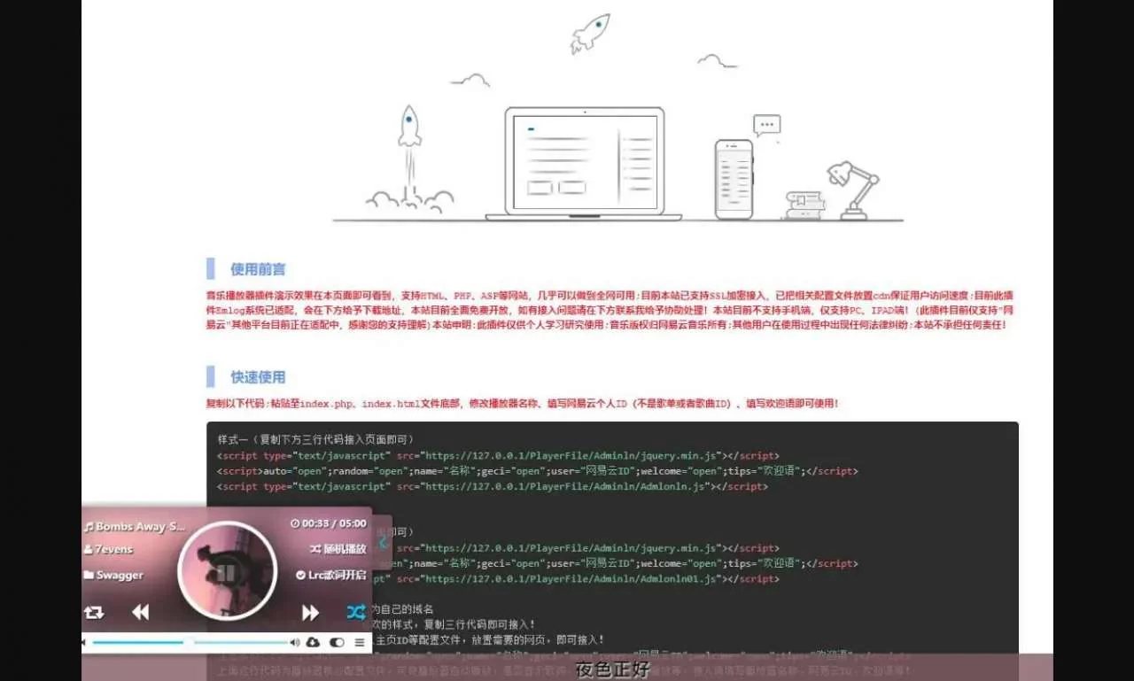 网易云接口API悬浮音乐播放器网站源码 admin 编辑 商品价格 VIP免费下载 联系客服 立即下载 虚拟商品,自动发货 7 天无忧退款 网易云接口API悬浮音乐播放器网站源码复制首页三行代码即可进行API接入目前有2种样式可以选择,喜欢哪种就复制哪种的代码可以自己使用,可以给任何站点使用其他站点使用修改一下三行代码的域名即可接入其他问题:播放器无法加载(请查看ID是否正确,是否有自己的歌单 歌单内是否有歌曲)
