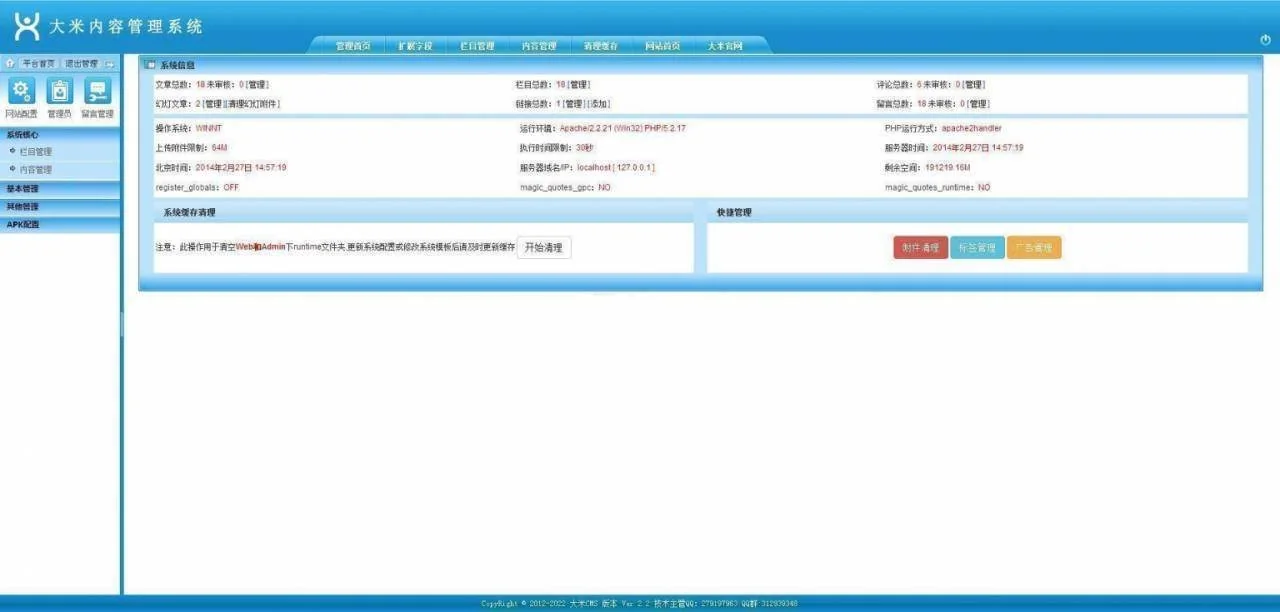 大米CMS是一个开源、快速、简单的PC建站和手机建站集成一体化系统,致力于为用户提供简单、快捷的PC建站和智能手机建站解决方案