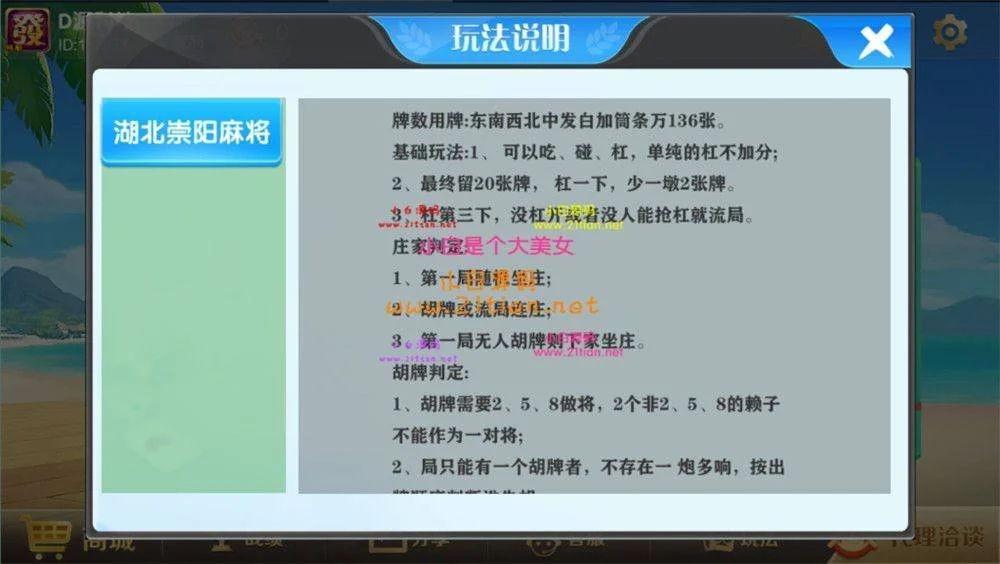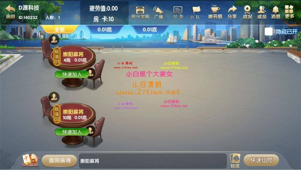 【湖南北崇阳地方麻将】开心云游崇阳大联盟单一麻将组件 admin 编辑 商品价格 VIP免费下载 联系客服 立即下载 虚拟商品,自动发货 7 天无忧退款 网狐结构LJ加密解密也不难,各种功用仍是相当完全。