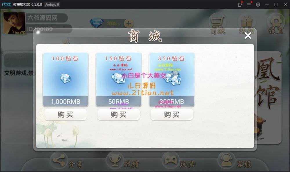 最新网狐二开地方玩法饶客汇房卡游戏组件+完整数据库 admin 编辑 商品价格 VIP免费下载 联系客服 立即下载 虚拟商品,自动发货 7 天无忧退款 这套房卡类型也是湖南那边的地方玩法,网狐二开出来的,看页面属于那种小清新类型其实我个人还是非常喜欢地方玩法的房卡游戏,因为本身是比较冷门的游戏,但也是因为冷门.