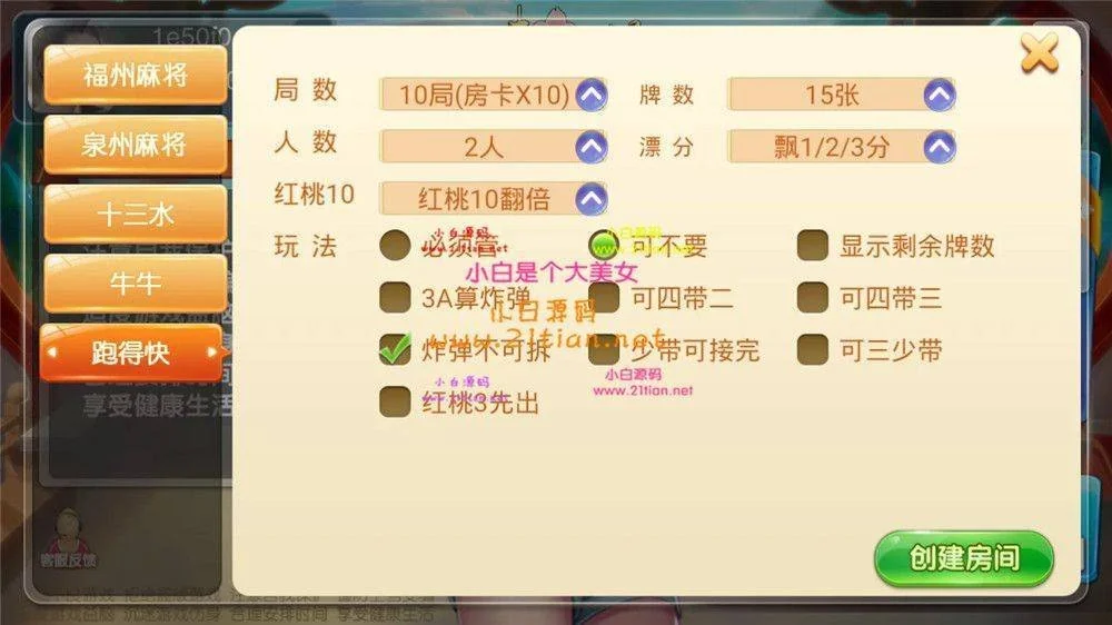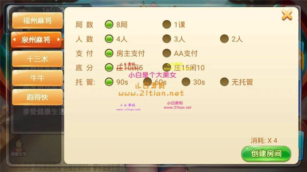 趣味麻将java版源码 带双端+代理+后台+服务端 福建玩法福州泉州麻将十三水 admin 编辑 商品价格 VIP免费下载 联系客服 立即下载 虚拟商品,自动发货 7 天无忧退款 福建玩法,福州、泉州加十三水的组合,很能打的一套。外面没流通过的UI,还是很不错的。文件完整,双端不缺。搭建有一定难度。