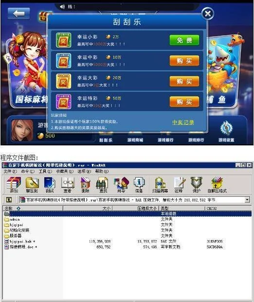 百家手机娱乐游戏源码 带搭建教程,内含斗地主,国标麻将等多款娱乐游戏 admin 编辑 商品价格 VIP免费下载 联系客服 立即下载 虚拟商品,自动发货 7 天无忧退款 源码描述:程序内容包含:网站前台、后台,服务端,手机客户端,脚本执行代码,数据库,后台功能包括有机器人控制输赢和库存值控制,全套程序附带搭建教程。源码截图: