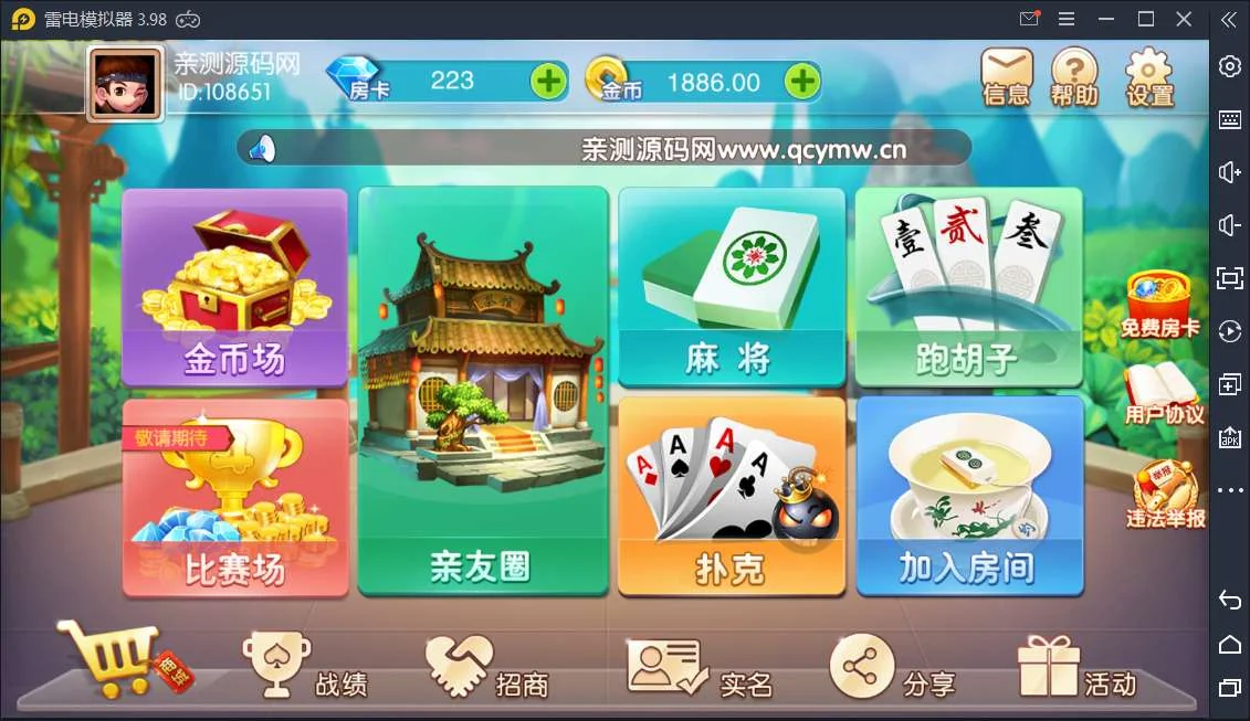 这套游戏平台由荣耀代码二次开发制作,QP基于区县级玩法,APP带IP检测定位功能,程序组件内核已进行破解,无需KEY,关于游戏模式有房卡场、金币场、以及比赛场,平台带亲4 E #友游戏源码出售团俱乐部。