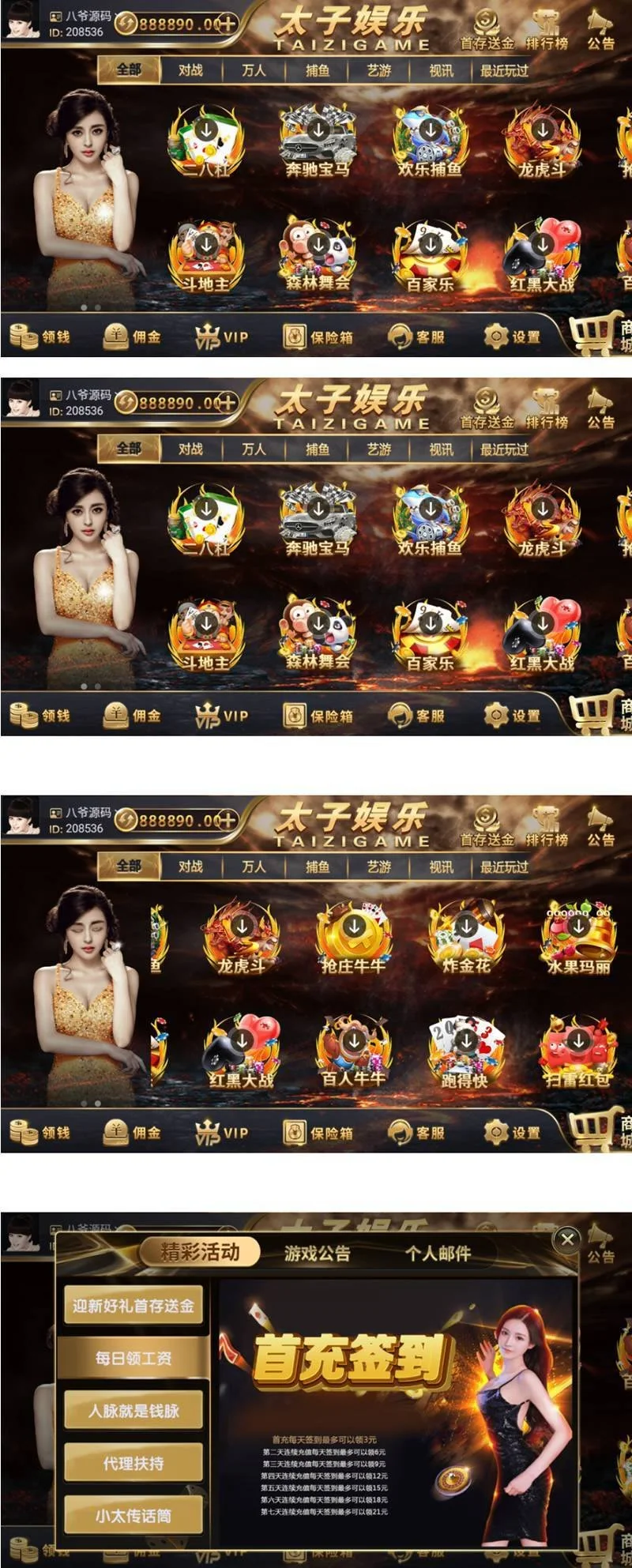 最新更新思博二开太子娱乐完整服务器打包数据+双端app完整 admin 编辑 商品价格 VIP免费下载 联系客服 立即下载 虚拟商品,自动发货 7 天无忧退款 源码描述:太子娱乐,不陌生吧,所以也就不用过多介绍了,这个就是说白了二开的ui,然后我看后台游戏啥的CP,**好像都预留了,说白了ui不错,游戏就这样,基本都一样。} k 1 k ]给你们随便玩玩吧。源码截图U k 4 Q m n d: