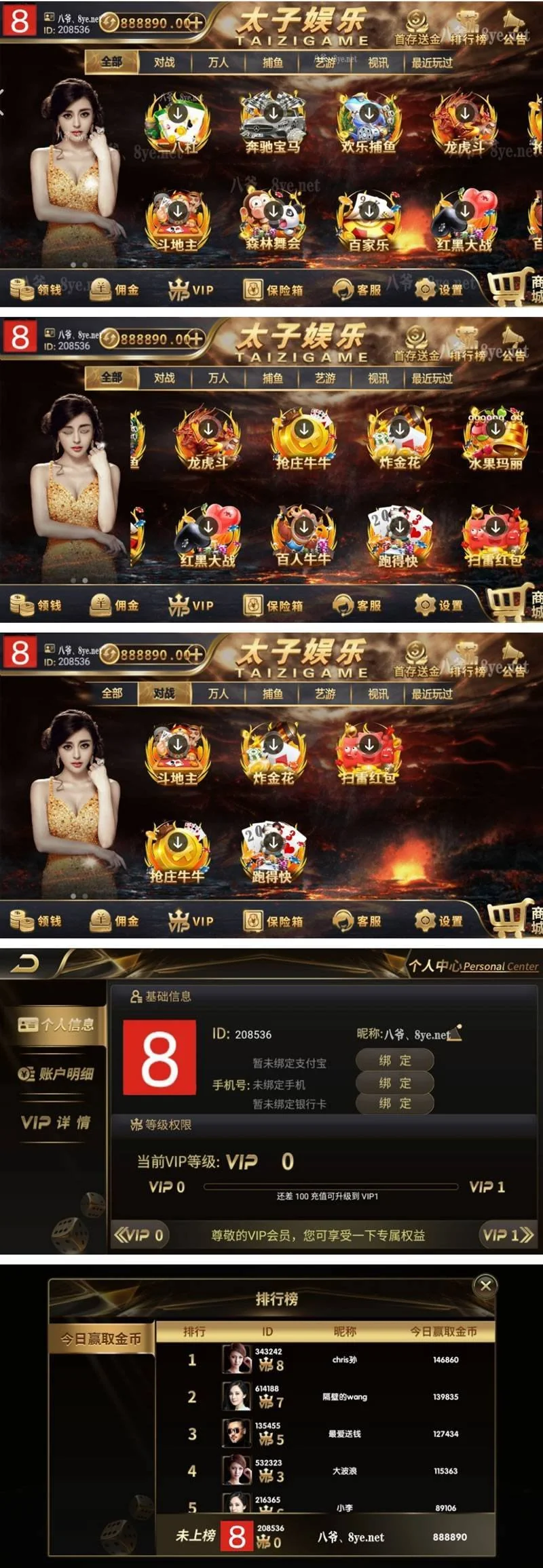 九月最新更新思博二开太子娱乐完整服务器打包数据+双端app完整 admin 编辑 商品价格 VIP免费下载 联系客服 立即下载 虚拟商品,自动发货 7 天无忧退款 源码描述:太子娱乐,不陌生吧,所以也就不用过多介绍了,这个就是说白了二开的ui,然后我看后台游戏啥的CP,**好像都预留了,说白了ui不错,游戏就这样,基本都一样。给你们随便玩玩吧。源码截图: