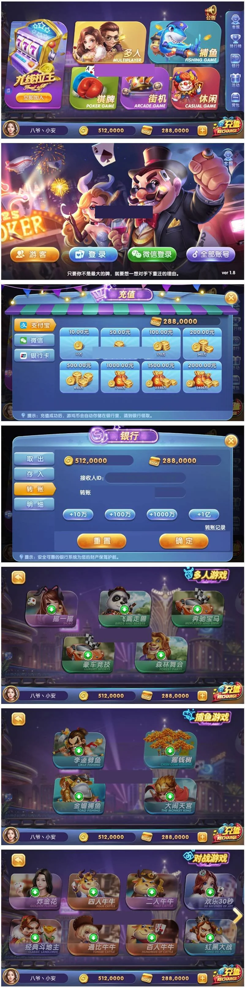 325电玩娱乐+数据完整+解密文件+双端APP admin 编辑 商品价格 VIP免费下载 联系客服 立即下载 虚拟商品,自动发货 7 天无忧退款 源码描述:325电玩QP+数据完整+解密文件+双端APP完整运营级别的,网狐内核,搭建都一样,很简单网狐二开的版本,总共22个子游戏,非常完美内含电玩:摇一摇、飞禽走兽、奔驰宝马、森林舞会、九线拉王、僵尸先生、生肖传奇、财神来了、埃及拉霸、水浒传,寻宝乐园。Qe * D Z H tP包含:炸金花、四人牛牛、二人牛牛、龙虎斗、经典斗地主、通比牛牛、百人牛牛捕鱼包w F y b含:李逵劈鱼、摇钱树、金蟾捕鱼、大闹天宫。源码截图: