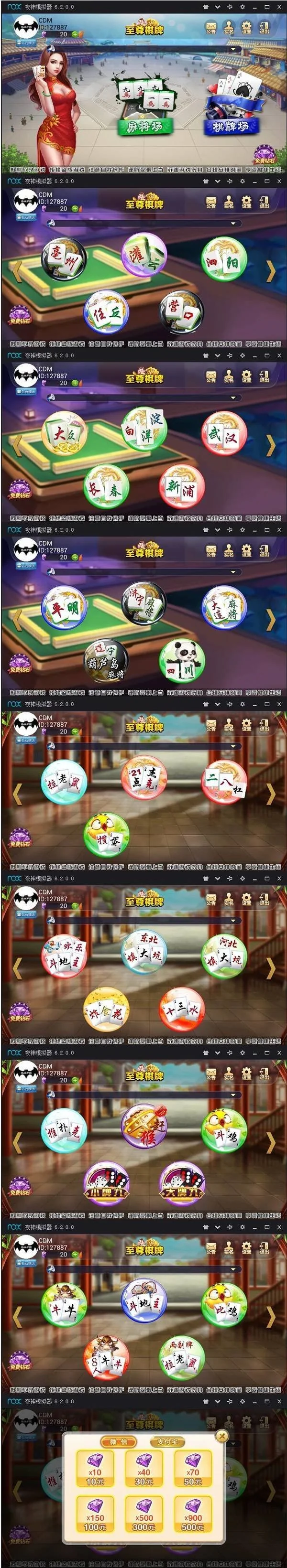 集合版包括有多款房卡游戏,其中分别有麻将类:长春麻将、营口麻将、武汉麻将、大众麻将,QP类:斗牛、斗地主、填大坑、扎金花、十三水等。程序组件包含:服务端,安卓、苹果客户端,前台Z Q l V、后台、代理网站,脚本代码,数据库。