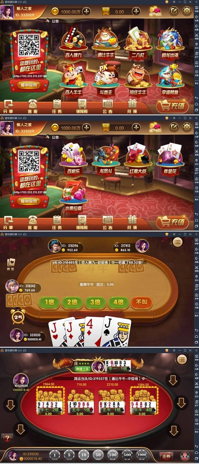 最新红色永.利完整源码运营版(绝对是目前全网最完整的版本,解压后23G,其中UI工程源代码就有18G左右):全套系统包含有服务器端源码(包含内核源码、协调服务器、约战服务源码等)+客户端UI工程源码+网站全套源码(包括网站前台.cs源代码+网站后台.cs源代码+网站代.理系统.cs源代码)+子游戏源码等。含Android客户端+iOS客户端(注意手端无源码)+最新支付@ L 5 ~ =接口文件,另附带有详细搭建教程(针对已编译过的组件版架设)。