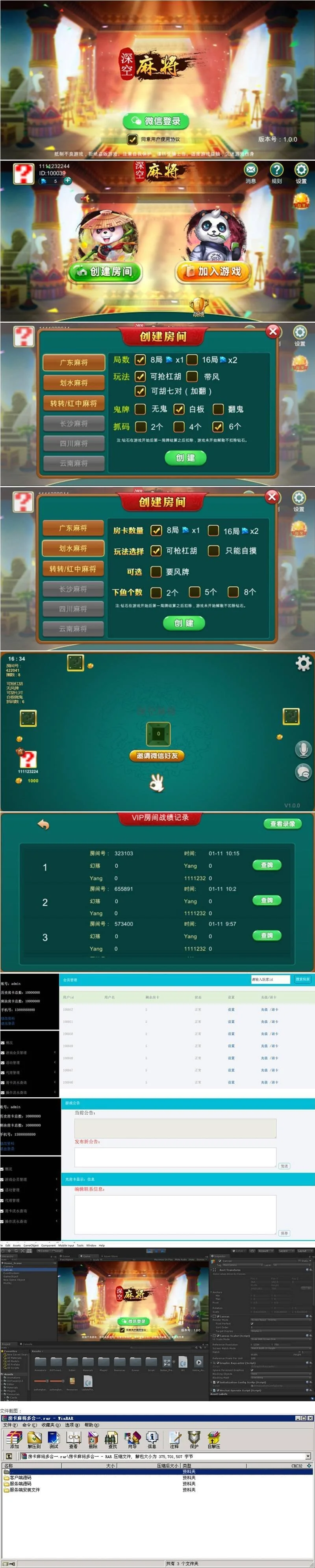全新Unity 3D《广东麻将、划水麻将、红中麻将、转转麻将》房卡麻将合集(手机端+服务器+网站后台)全套完整源码