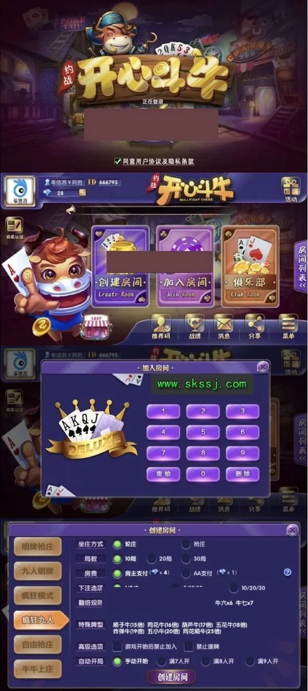 约战牛牛之开心斗牛房卡牛牛游戏源码带前后端和数据库全套完整组件