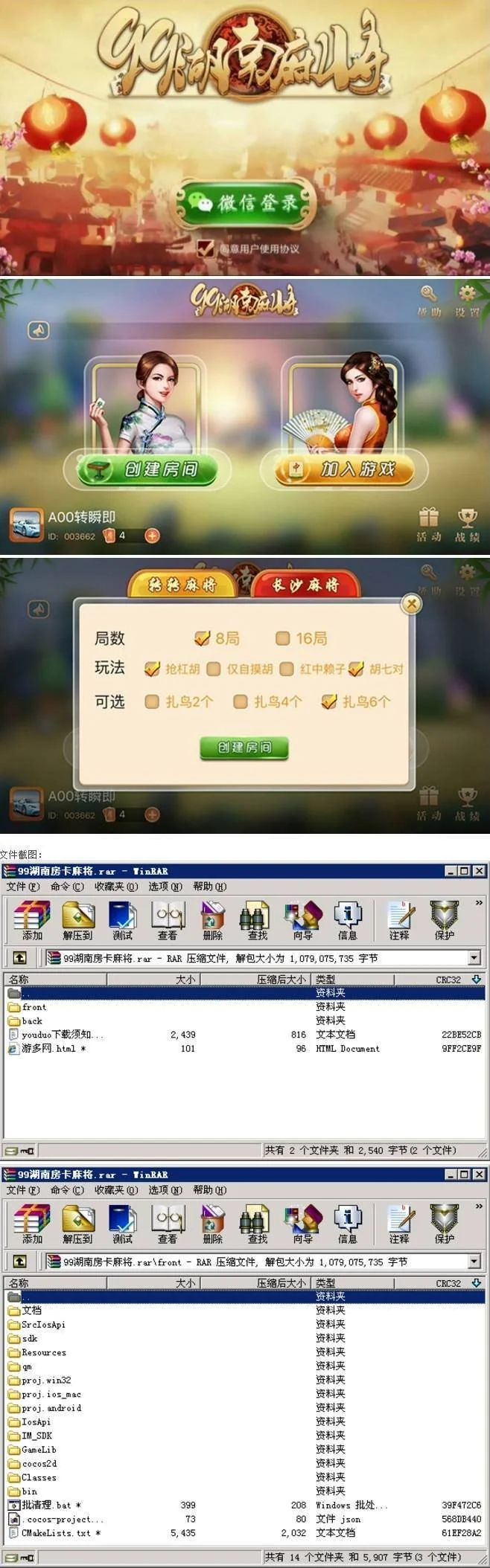99湖南房卡麻将全套完整源码(手机端+服务器+网站后台) admin 编辑 商品价格 VIP免费下载 联系客服 立即下载 虚拟商品,自动发货 7 天无忧退款 源码描述:99湖南房卡麻将全套完整源码(手机端+服务器+网站后台)服务端带内核通信源码,使用vs 2012编译源码截图: