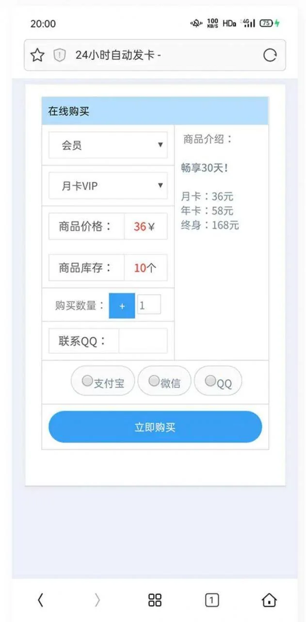 K378 非常简洁的PHP个人自动发卡平台网站源码 admin 编辑 商品价格 VIP免费下载 联系客服 立即下载 虚拟商品,自动发货 7 天无忧退款 源码介绍:超简洁前台样式 自动发卡平台 免授权,无后门,完美运营安装说明:麒麟源码网亲测环境:nginx1.18 php7.2 mysql5.6 上传后访问域名===》按照提示安装即可