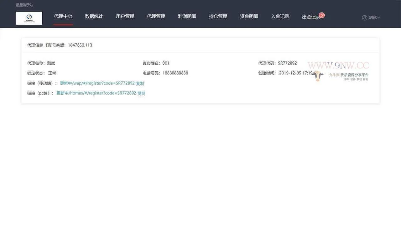 某站卖4000元的源码,直接打包,无删减。没教程,菜鸟还是别下了。带编译后文件 期间修复了大量的bug,系统通过行情接口,绘制出了实时的分时线和K线 整个系统分为手机端和PC端,可实现H5打包APP应用,pcweb打包win端 系统分用户端、打新后台、单独代理后台和总后台 全新java架构spring框架 前台为vue构架 1.新增加新股申购功能 2.独立新股管理后台 3.系统通过行情接口,绘制出了实时的分时线和K线。 4.所有计算方式重新更新 5.新加了前台充值入金和后台审核入金功能