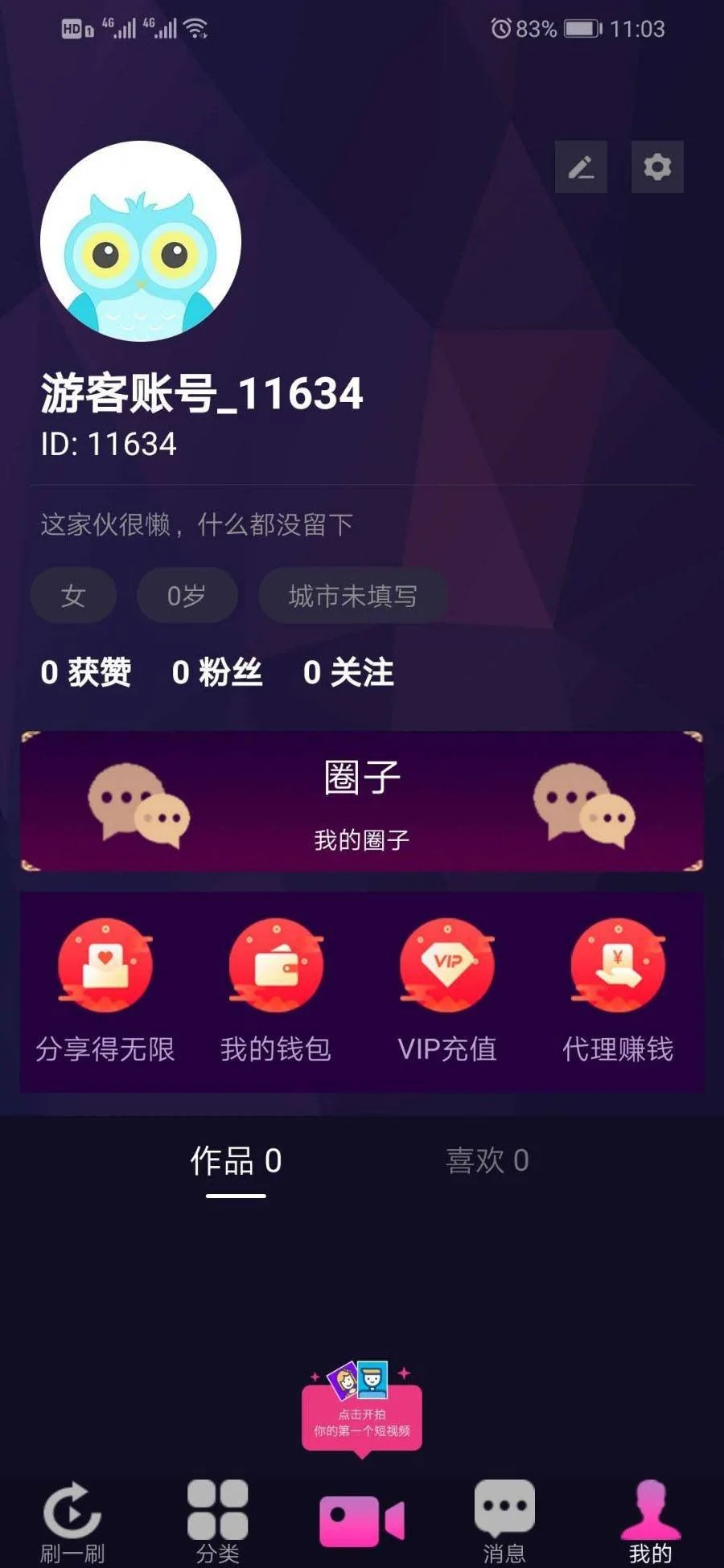 源码是15000某站购买来的仿抖音视频app/仿91视频app/短视频功能/原生双端开发,除了直播没有开通,其他功能都是精仿,非会员不能评论,发布视频需要注册,功能模块很多,支付模式微信,支付宝,卡密,用户自己上传带赏金,点赞,关注,留言等功能。 1、会员系统,对接支付,充值会员。 2、刷一刷功能,也就是短视频功能。 3、圈子版块,看到所以人发布的圈子,自己也可以发布,视频图文。 4、每日观看次数,推广获取每日观看次数。 5、邀请码邀请朋友,邀请好友越多,等级越高。 6、观看历史,收藏功能。