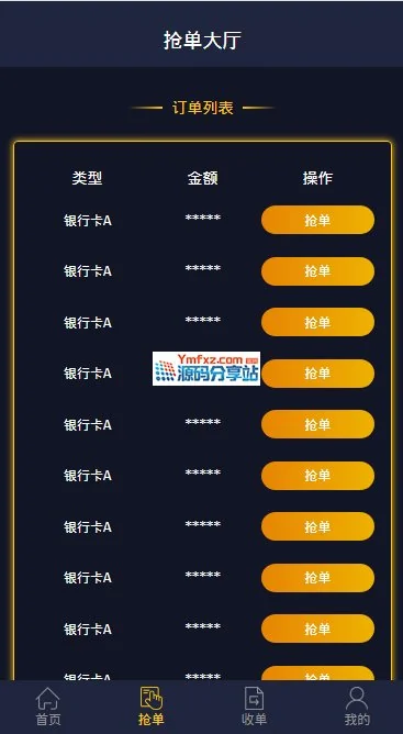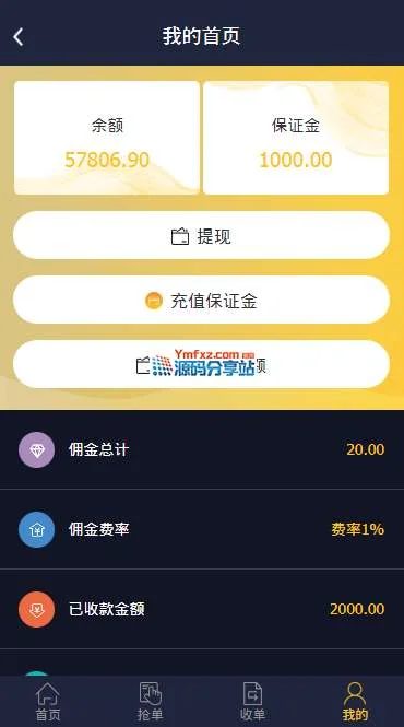 抢单系统源码,带保证金功能,二开完整版,带搭建教程 admin 编辑 商品价格 VIP免费下载 联系客服 立即下载 虚拟商品,自动发货 7 天无忧退款 源码介绍 抢单系统源码,带保证金功能,二开完整版,带搭建教程服务器直接打包的无任何删减thinkphp+mysql开发的这个主要是里面加了保证金的功能,不缴纳保证金就不能抢单,源码完整上线运营的源码摘下来的。独家首发,喜欢的下载自行研究!网站截图