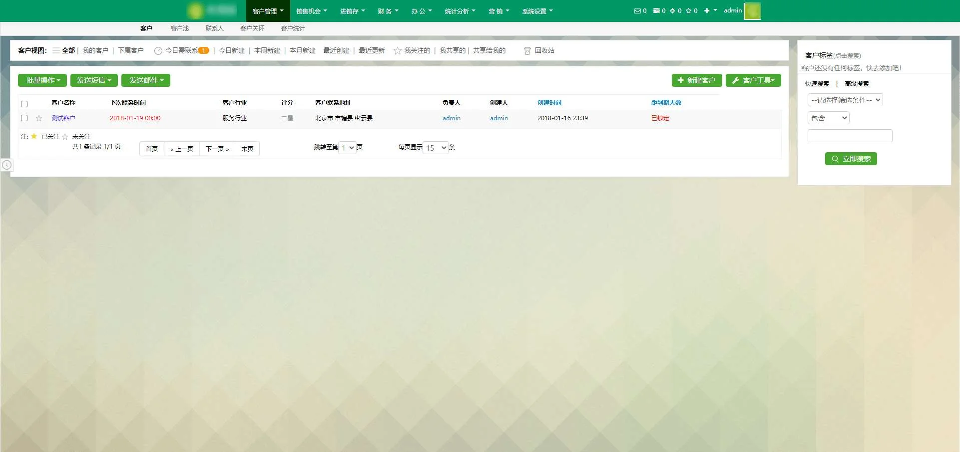 CRM分为线索、客户、商机、合同、财务、销售、采购、库存、产品、任务、日程、知识、日志、站内信、营销等十大模块和五小模块,涵盖中小企业实际运行中完整的操作流程。线索模块中可设定员工限时限额领取线索,规定时间内线索没有得到利用就会自动进入线索池,避免造成资源的闲置浪费;客户模块中拥有高级筛选功能,提升客户分类查询效率;自定义模块字段的设置可根据需要增加删除新的字段等等,人性化的设置让工作更加得心应手。