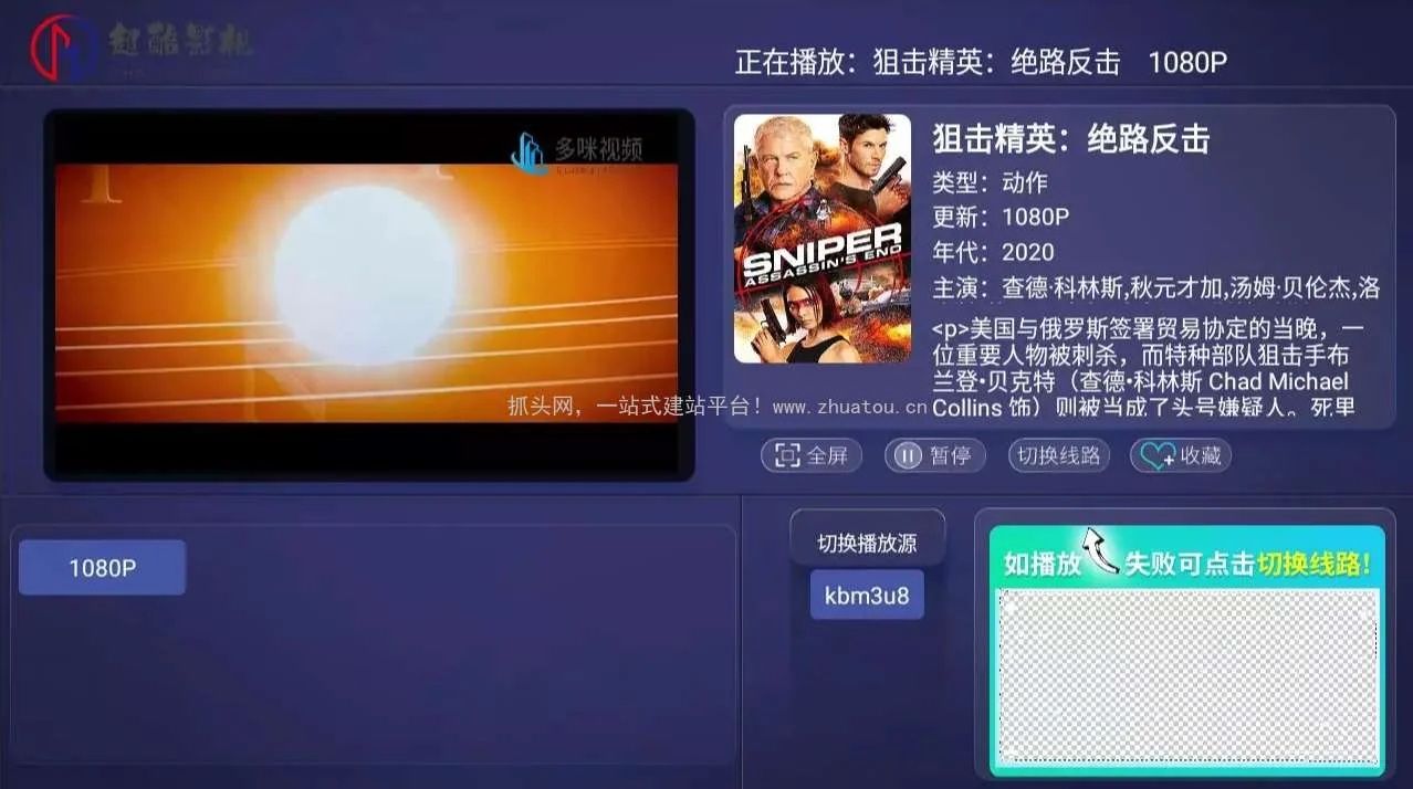 自带10个解析线路,有电视直播功能,首页滚动公告,轮播大图广告或者轮播; Z T $ ; ] A ~大图视频推荐,