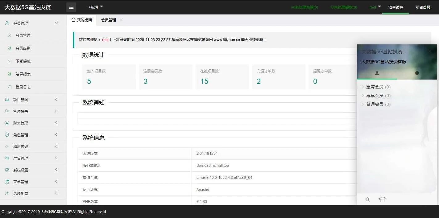 【完美运营版】5G基站投资理财新能源基金外汇P2P金融源码带积分商城众筹理财 admin 编辑 商品价格 VIP免费下载 联系客服 立即下载 虚拟商品,自动发货 7 天无忧退款 源码介绍:5G基站投资理财新能源基金外汇P2P金融源码带积分商城带客服系统手机端 特色: 多返息方式:自然日 小时 按天 团队一条线明细 三级收益分成 积分商城 优惠券 独立客服系统 短信接口 在使用本系统时,使用方必须在国家相关法律法规范围内并经过国家相关部门的授权许可,禁止用于一切非法行为。使用用途仅限于测试、实验、研究为目的,禁止用于一切商业运营,本站不承担使用者在使用过程中的任何违法行为负责源码截图: