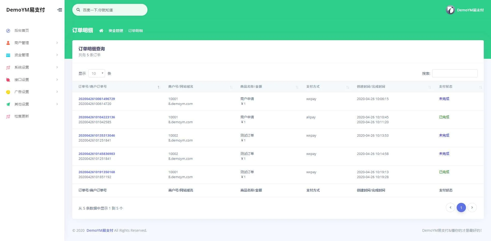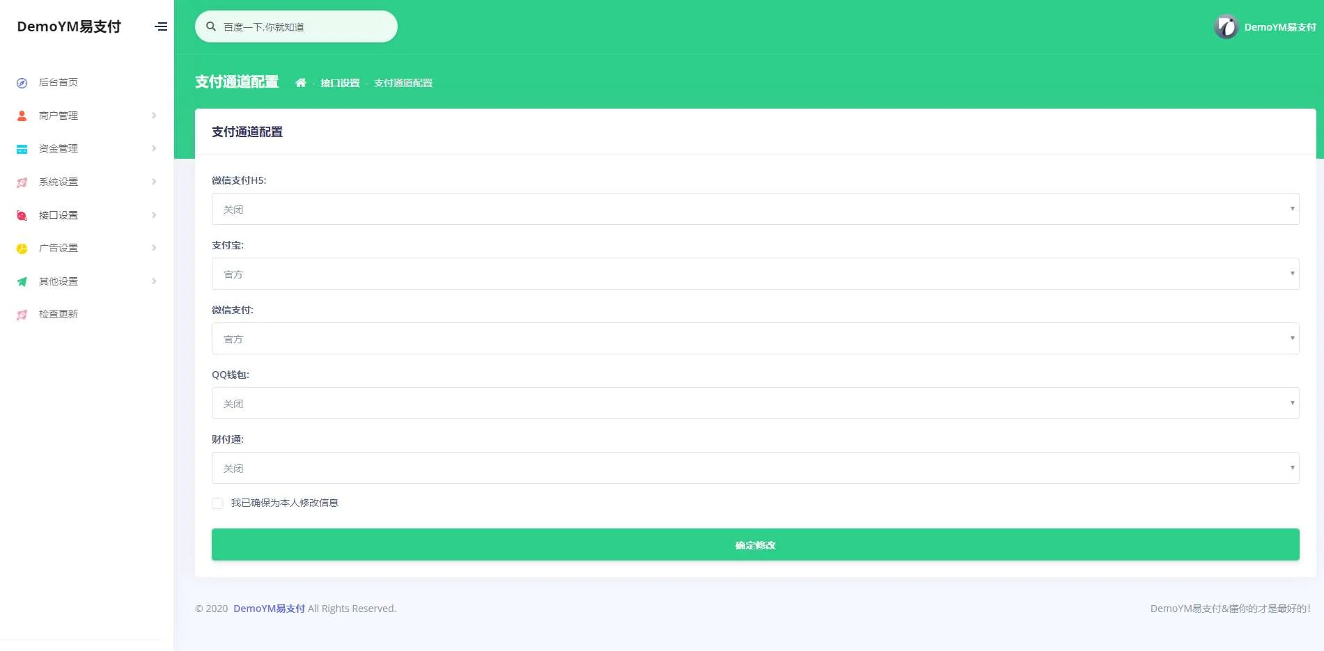 5.支付接口:支持支付宝官方pc扫码、手机网站支付、支付宝当面付;支持QQ官方扫码支付、手机支付;支持微信pc扫码、jsapi公众号支付、微信h5;官方码支付等等