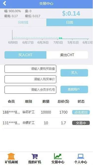 白铁矿工:直推:0人 团队总人数:1人 交易手续费:20 可拥有算力:80G 赠送矿机:mini矿机*3