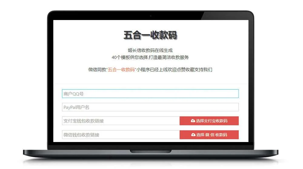 【五合一收款码生成】最近更新版五合一收款二维码在线生成网站源码多模板[纯HTML免安装] admin 编辑 商品价格 VIP免费下载 联系客服 立即下载 虚拟商品,自动发货 7 天无忧退款 【五合一收款码生成】最近更新版五合一收款二维码在线生成网站源码多模板[纯HTML免安装] 五合一收款码在线生成,40个模板 支持微信支付、支付宝支付、手机QQ支付、京东钱包、百度钱包,PayPal五合一收款,将其二维码合并为一个二维码,无需手续费,支持qq头像,昵称判断(html单页版多模板免安装)