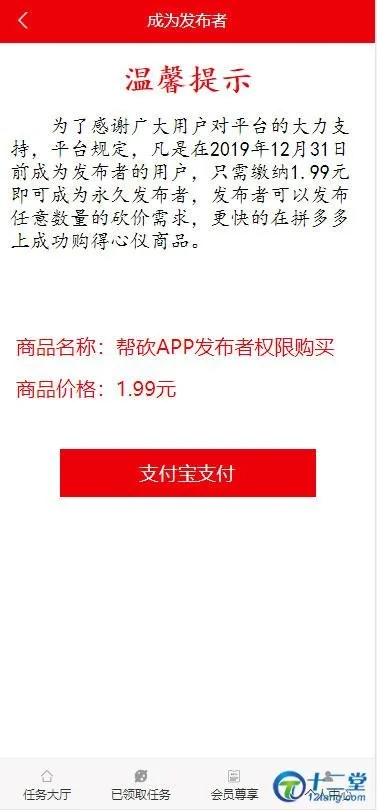 最近首发帮忙砍价任务赚钱源码已完成支付对接 支持会员等级购买,三级返佣。 admin 编辑 商品价格 VIP免费下载 联系客服 立即下载 虚拟商品,自动发货 7 天无忧退款 最近首发帮忙砍价任务赚钱源码已完成支付对接 支持会员等级购买,三级返佣。程序为ThinkPHP3.23框架。发布任务付费开通权限,支持等级购买,不同等级可以设置返佣和领取任务数。支持会员等级购买,三级返佣。