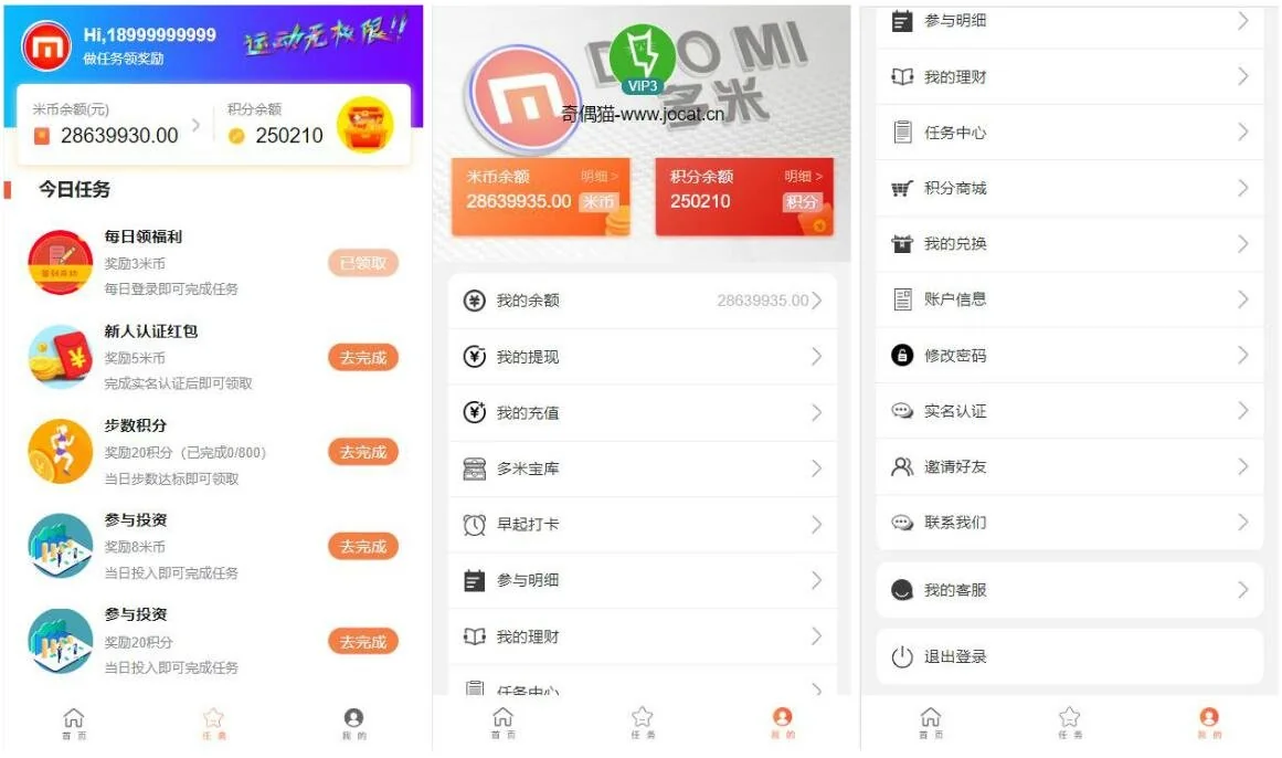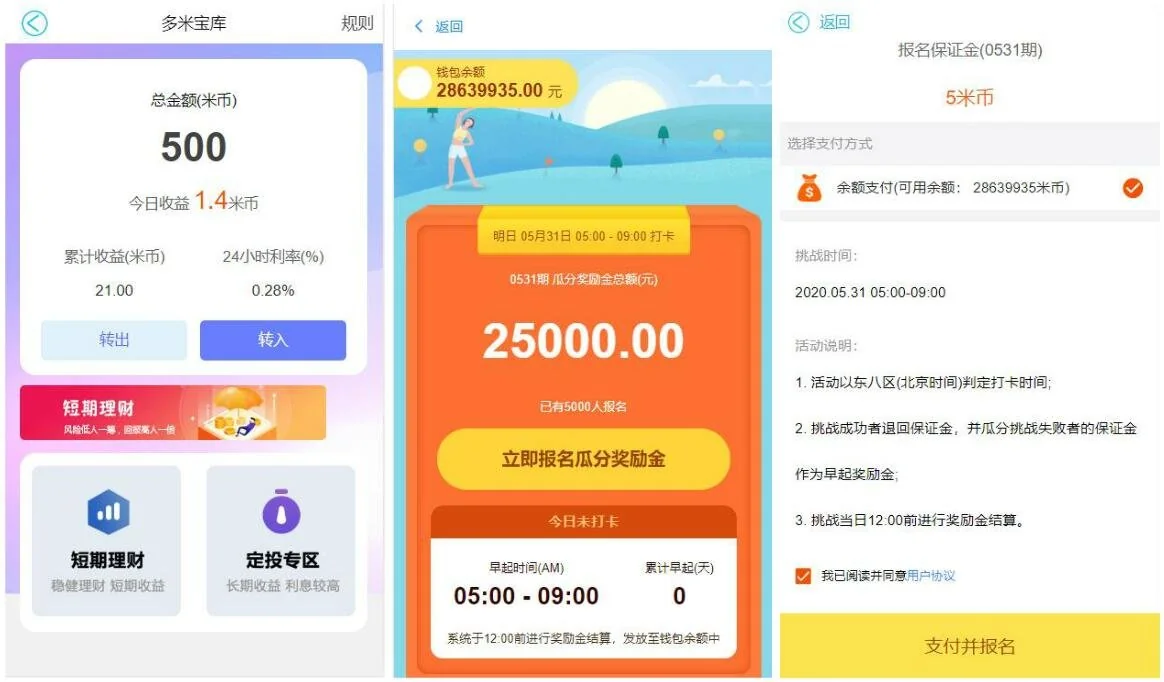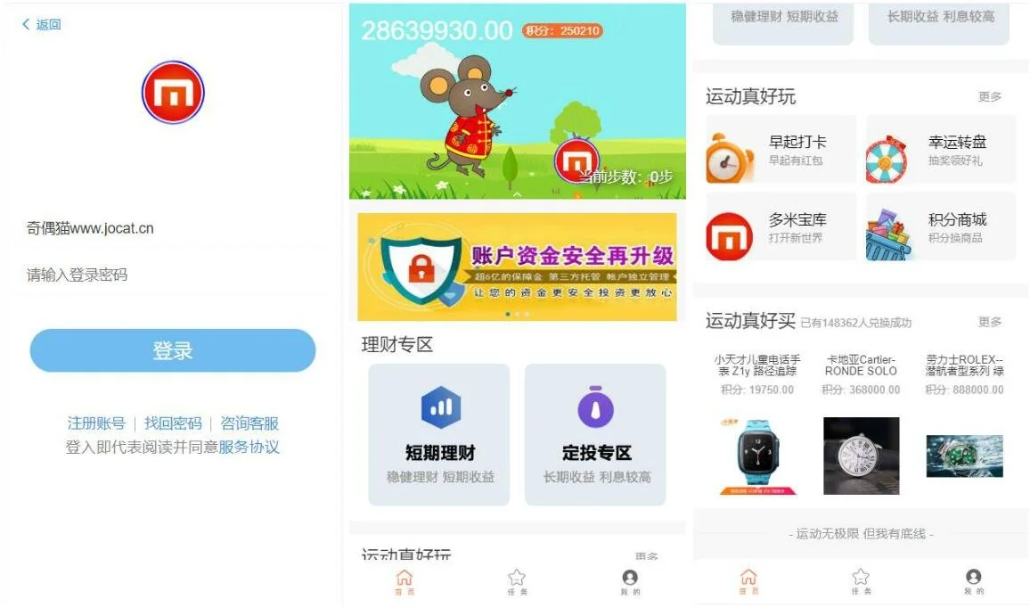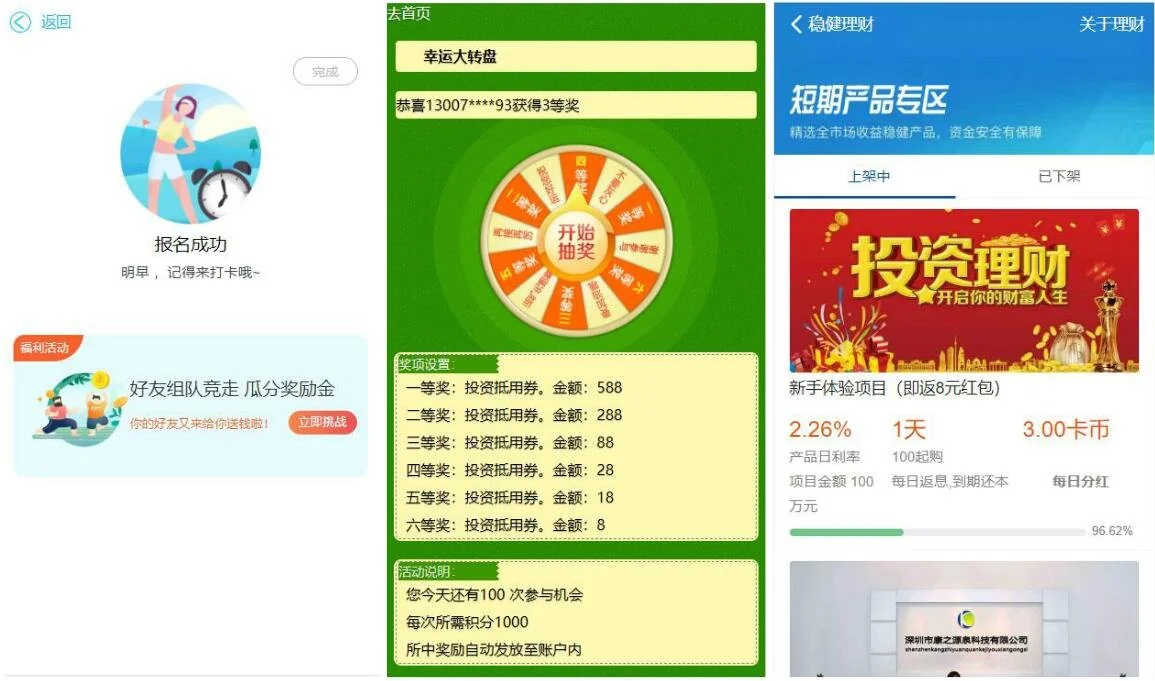程序有记步跑不功能,余额宝功能,早起打卡,积分商城,抽奖功能等各方面为一体的综合理财项目