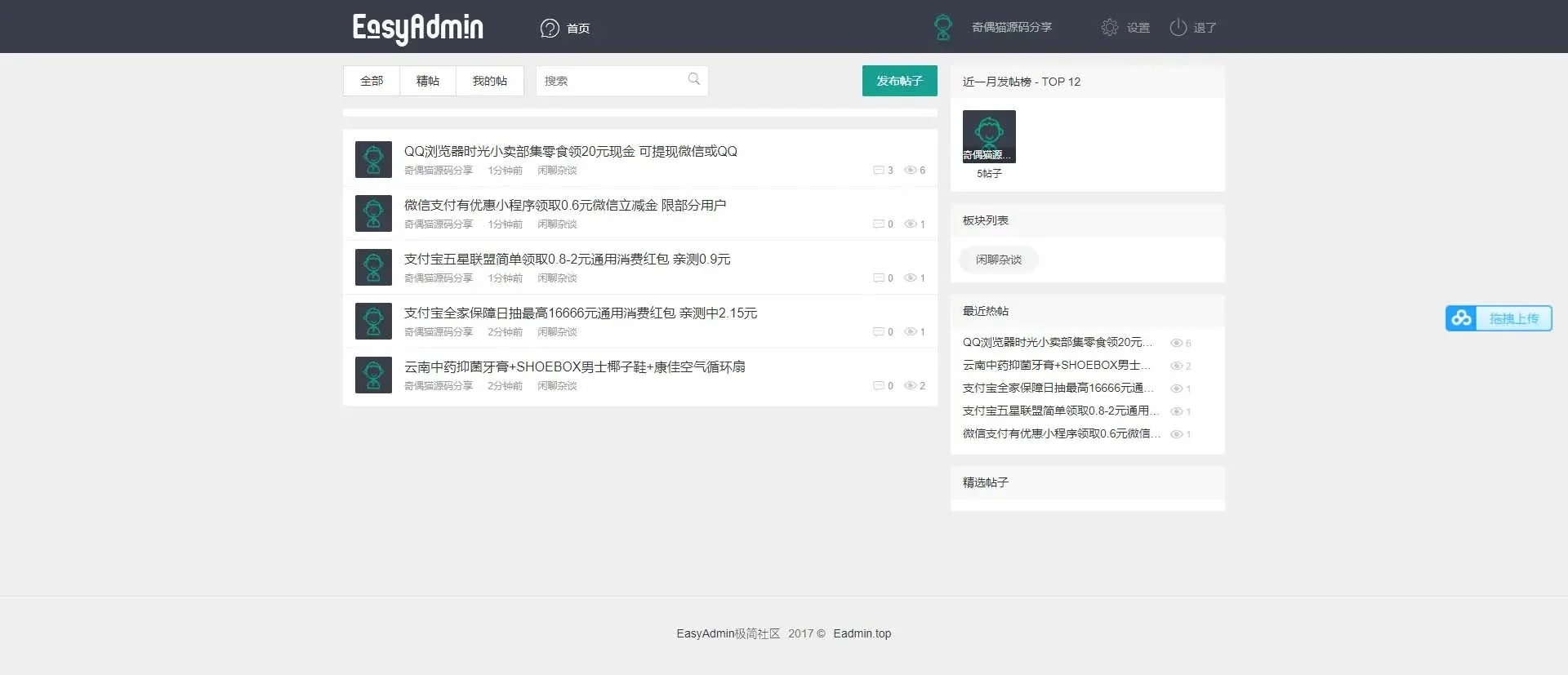 EAdmin极简社区简约清爽社区论坛源码下载自适应手机端带后台带会员中心可发帖