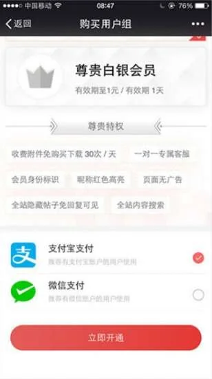 适用支付宝钱包,微信支付方法完成vip会员用户群选购