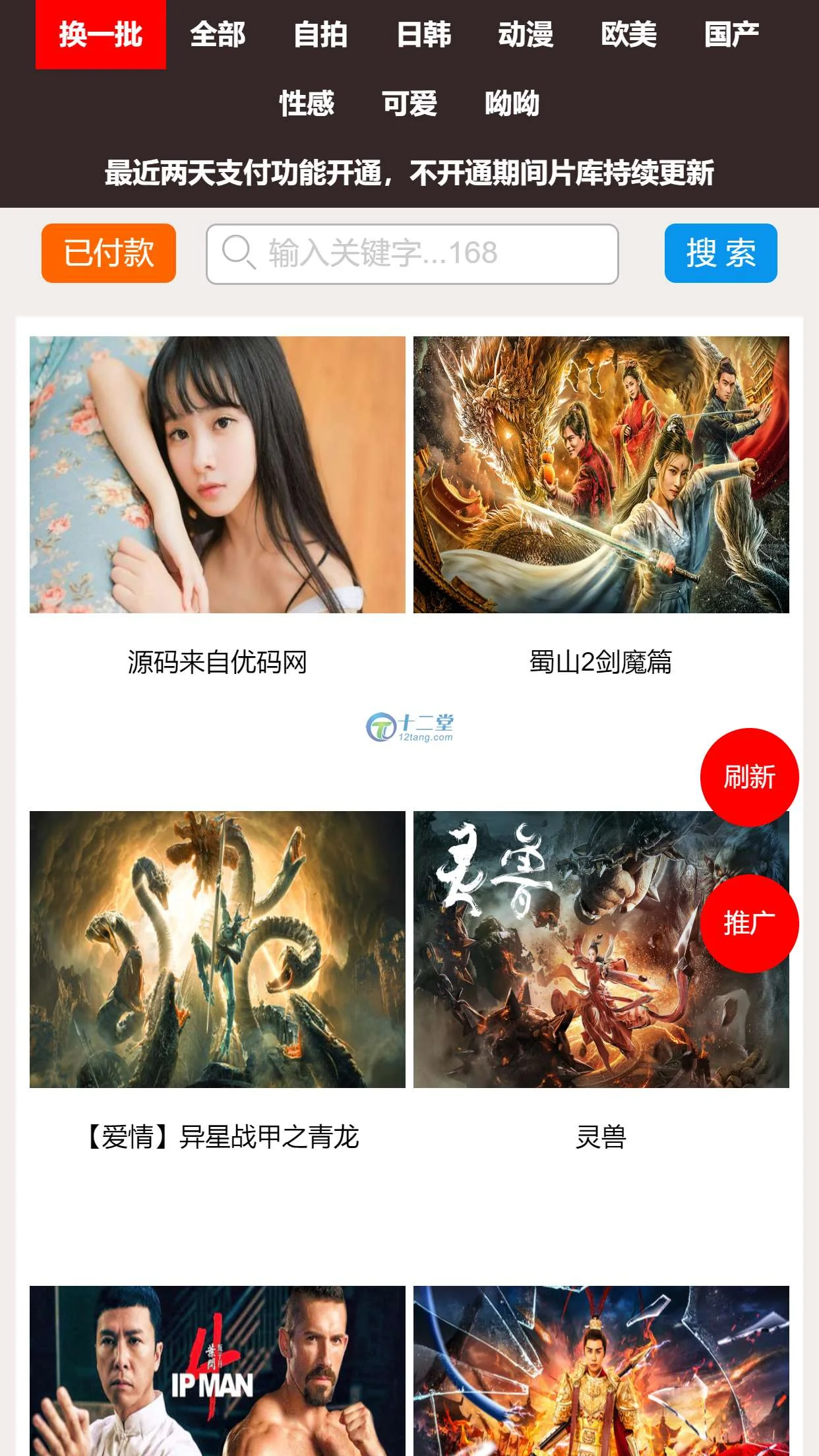 【站长亲测版云赏包天打赏源码】8.2微赏包天月季年微赏会员版影视系统点播付费 带有安装教程 admin 编辑 商品价格 VIP免费下载 联系客服 立即下载 虚拟商品,自动发货 7 天无忧退款 【站长亲测版云赏包天打赏源码】8.2微赏包天月季年微赏会员版影视系统点播付费 带有安装教程最新版打赏源码,互站卖 2K - 3K 的,看了下接了好多支付接口,包天包月等功能也都有,非常不错!多模板选择更多源码可登录前端界面实测截图后端界面实测截图: