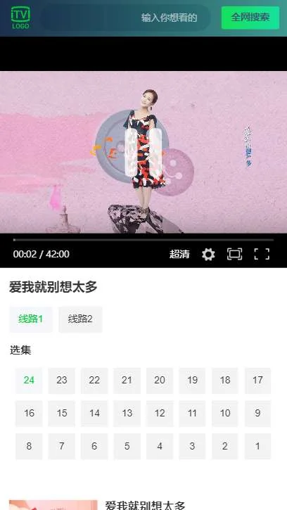 一个近乎纯前端的H5影视程序,高仿爱奇艺APP界面,资源全面,更新及时,搜索功能强大,VIP影视免费看,微商公号吸粉利器。本影视站源码采用PHP实时抓取可用资源,以文本缓存方式缓存存储,程序运行非常快速。免费源码,无需授权,无后门,简单纯净,前端代码无混淆,方便二次开发修改,无需安装,即传即用。本程序无需费心管理,让不懂程序开发又没有太多时间经常更新数据的朋友,可以快速搭建一个属于自已的电影网站。