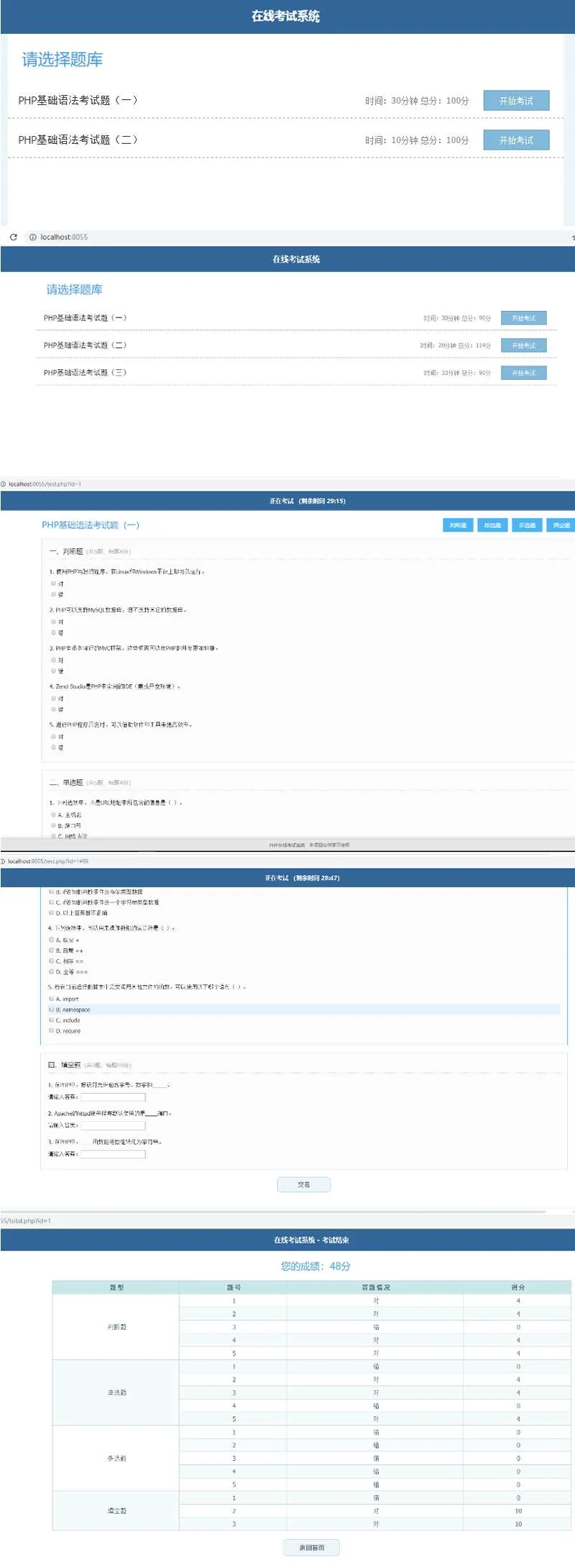 简单的PHP在线考试系统实例源码