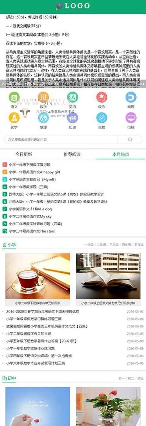 帝国CMS中小学生学习模板学生知识点总结试题练习题考试资讯源码下载