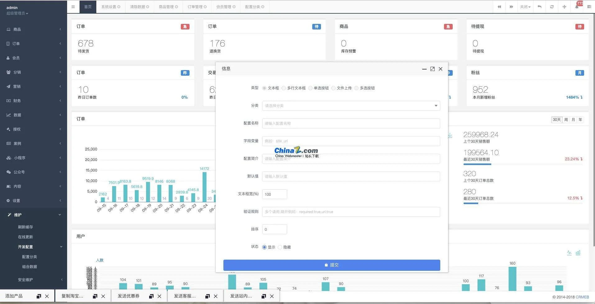 CRMEB系统就是集客户关系管理+营销电商系统,能够快速积累客户、会员数据分析、智能转化客户、有效提高销售、会员维护、网络营销的一款企业应用,包含商城、拼团、砍价、秒杀、优惠券、积分、分销等功能。