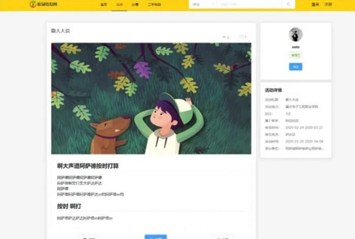 二手物品信息展示 信息搜索 发布活动和比赛以及商品