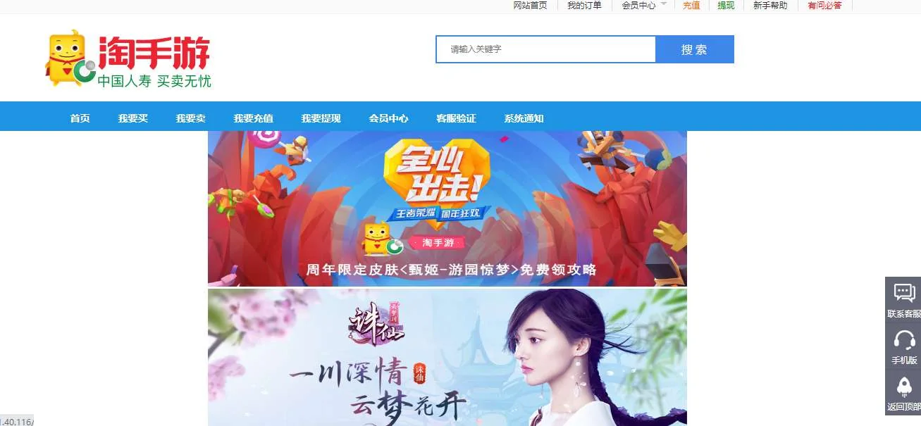 【淘手游】游戏币交易手游账号出售源码 带有安装教程