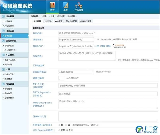 第5步.登录后台,访问域名/admin进入后台管理员账号和密码是admin和admin888进去之后一定先找到站点设置的地方,把域名和网站名称都改为你自己的,然后保存后再去测试看前台的效果!!