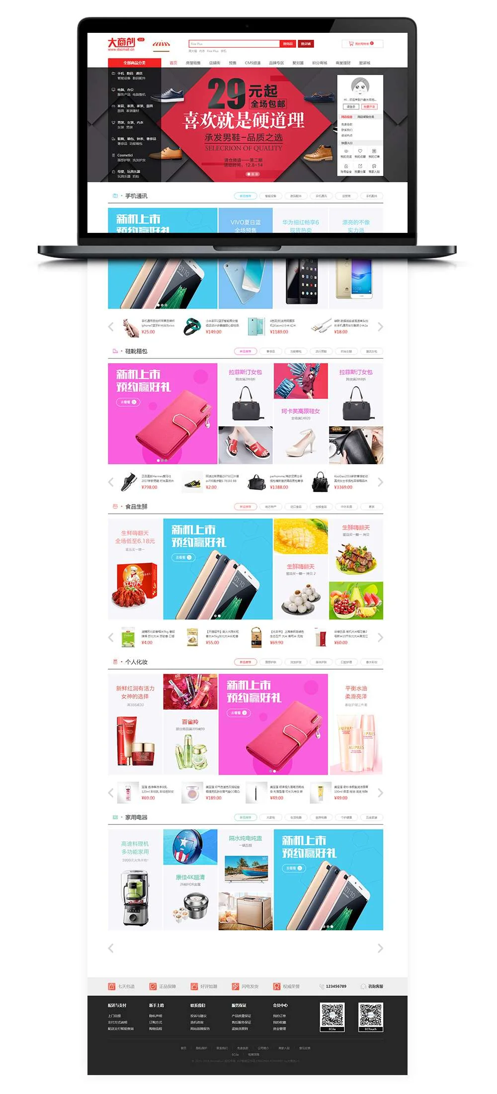 这是本站之前发布过的一款程序,看到有会员需要最新版的,刚好碰到更新,不多说,弄来给你们!一款非常成熟的商城源码,强过现在市面上的其他b2b2c多用户商城系统!包含PC+WAP端+微分销+微商城+拼团+批发+主流wx支付宝支付+商家入驻+砍价+H5支付+首页可视化功能+微商城短信开关+首页可视化编辑+主图视频+云旺+内置8套首页可视化模板!