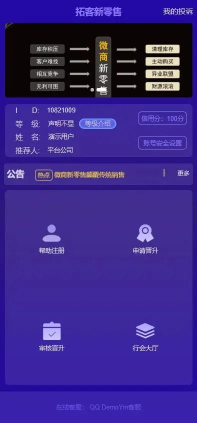 一个新零售的派单工具,有了平台,会让客户主动加你买货,100成交,还会积极帮你转介绍,让你不仅仅获得派单,还能建立自己的商友圈,积累强大的人脉。平台的机制中一共分为13个商友星级,从一星到十三星,每升一星就会获得大量的平台派单,升到13星一共可获得百万笔零售订单。欧皇资源论坛 精品源码任意下载